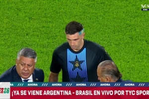 阿根廷门将马丁内斯已经为国家队出战50场比赛,成为队史出场第三多的门将,阿根廷足协主席塔皮亚赛前向他颁发了纪念品。